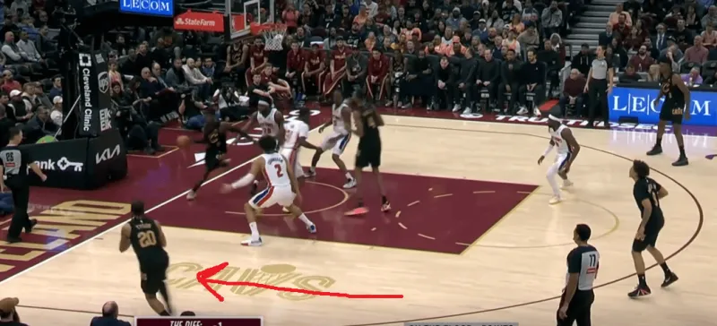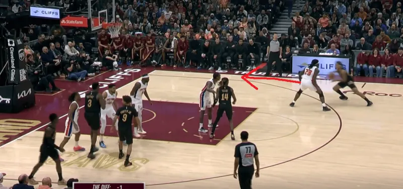 这一次也是同样的道理,在阿伦引导右侧的掩护下,泰森变向走左侧过掉了CC,从而吸引了活塞的防守收缩,